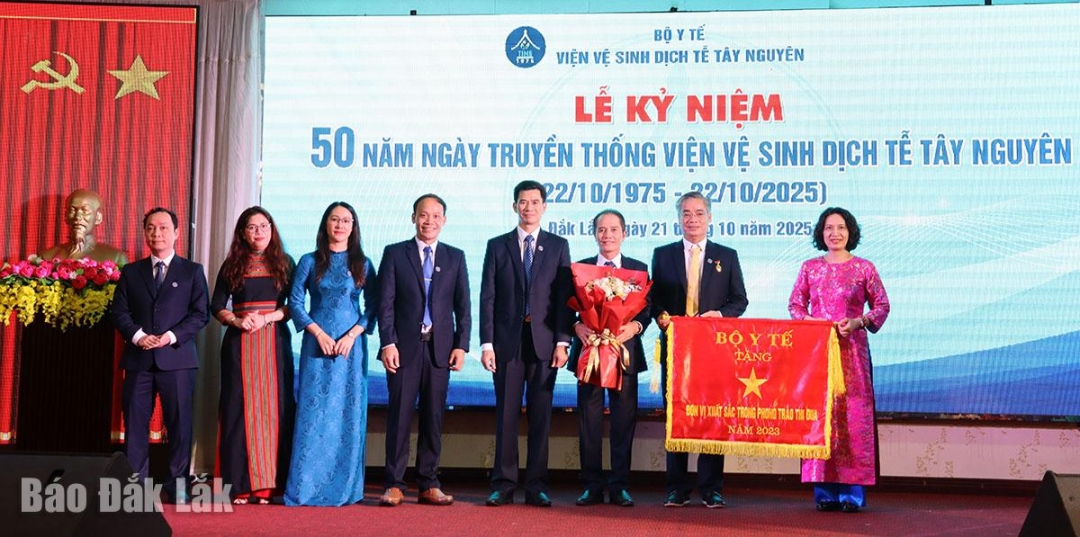 Viện Vệ sinh dịch tễ Tây Nguyên nhận Cờ thi đua do Bộ Y tế trao tặng.