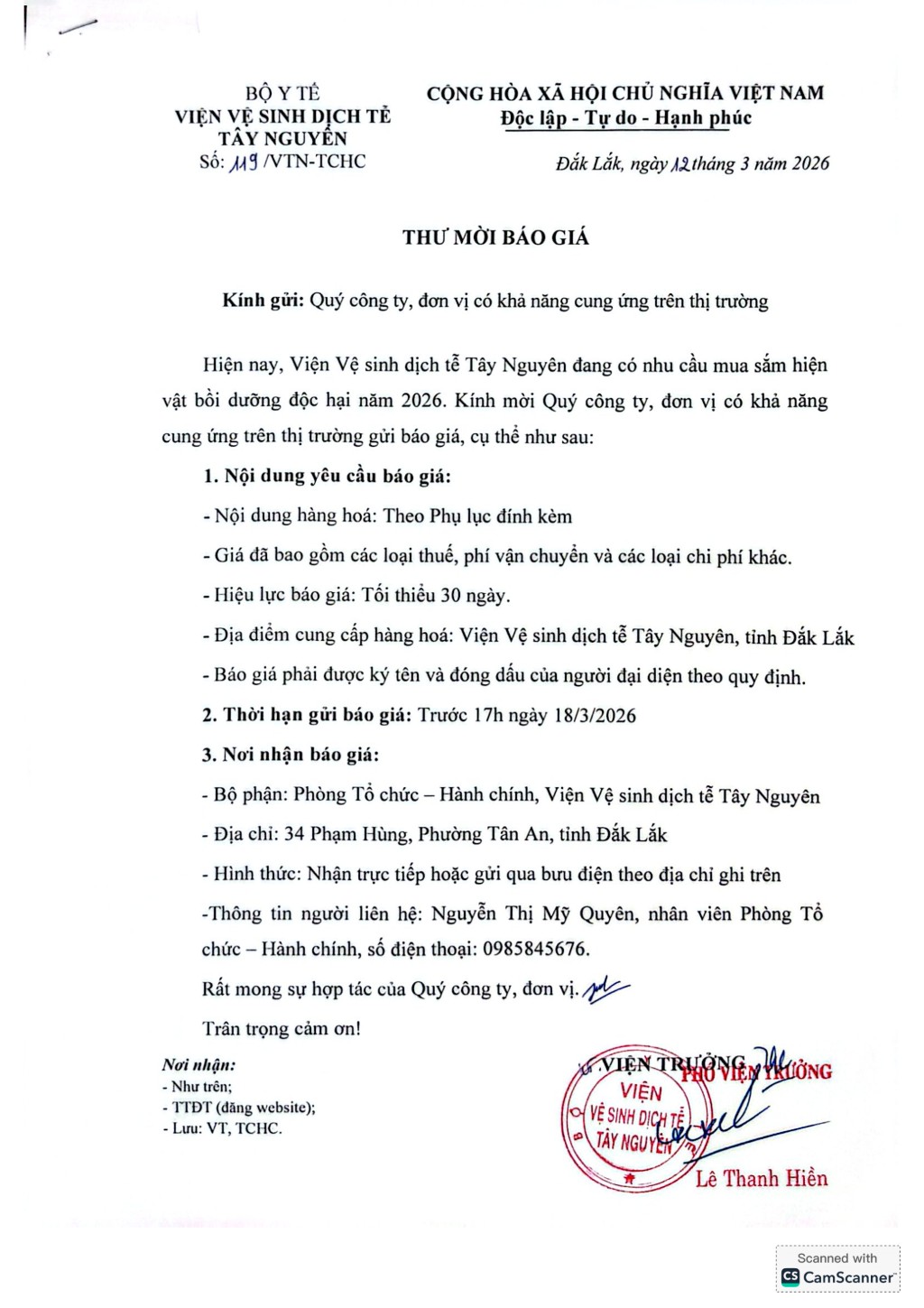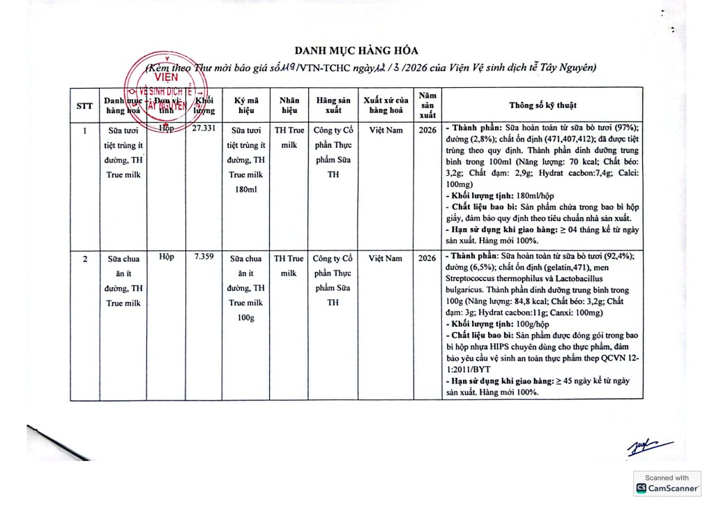 Thư mời báo giá mua sắm hiện vật bồi dưỡng độc hại năm 2026